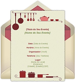 ToDentro.com tem Modelos de Convites Online Gratis para festas: convites Cha de Cozinha, convites Cha de Panela, e Convites Cha de Casa..