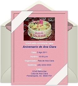 No ToDentro.com, pode importar a sua foto individual ou usar uma foto disponivel na ToDentro.com. ToDentro ajuda voce a planejar seu evento do inicio ao fim de partida com um convite personalizado e gratuito. Escolha o seu convite de muitos modelos convites infantil disponiveis, importar os e-mails de seus convidados, e enviar. Seus convidados podem resposta, escreva um comentario, e registre-se para levar um item de a sua Lista de Pedidos. Depois da festa, importar suas fotos para a sua pagina convite e convidar seus convidados a exibi-los.